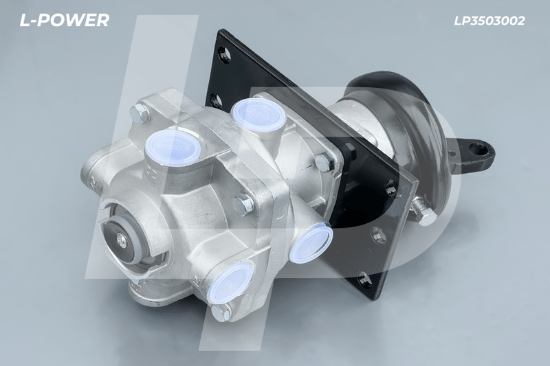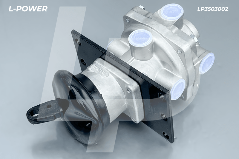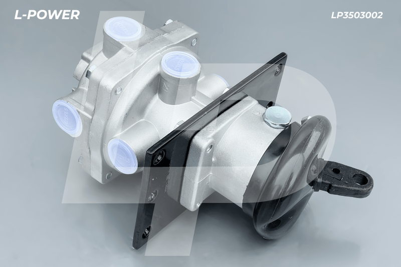 Главный тормозной кран L-POWER LP3503002 (100-3514008) предназначен для управления тормозной системой с пневматическим приводом, устанавливается на раму грузового автомобиля и приводится в действие системой тяг от педали тормоза. По конструкции является двухсекционным, при котором нижняя секция отвечает за подачу сжатого воздуха на задние тормозные камеры, а верхняя в передние тормозные камеры.