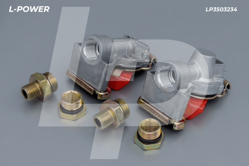 Комплект соедин. головок (с клапаном и без клапана). Красные крышки (питающая линия). M22x1,5 с переходными штуцерами на M16x1,5