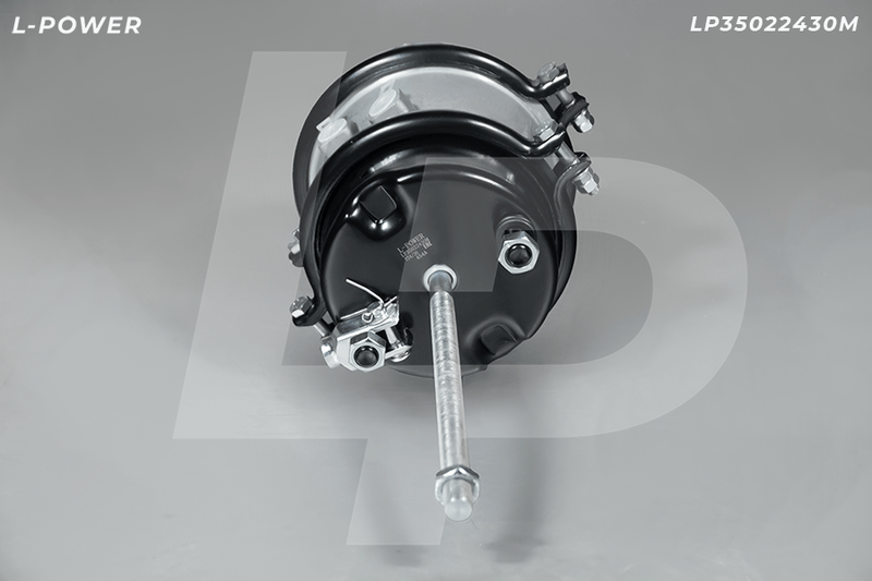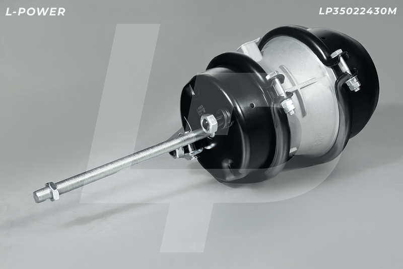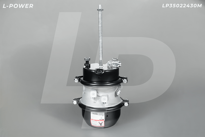 Камера пневматическая с пружинным энергоаккумулятором барабанного тормоза (энергоаккумулятор). Тип 24/30 (24тип рабочий тормоз, 30тип стояночный). Мембранный тип («матрешка», «обслуживаемая»).Длинный шток. Шток М16х1,5, вылет штока (по центру оси пальца) 220мм. Ход штока 75/75мм. Шпильки М16х1,5 (между шпильками 120мм). Вилка, гайки и шайбы шпилек в комплекте. Хомуты на оцинкованных болтах с шестигранной головкой. Порты подключения М16х1,5