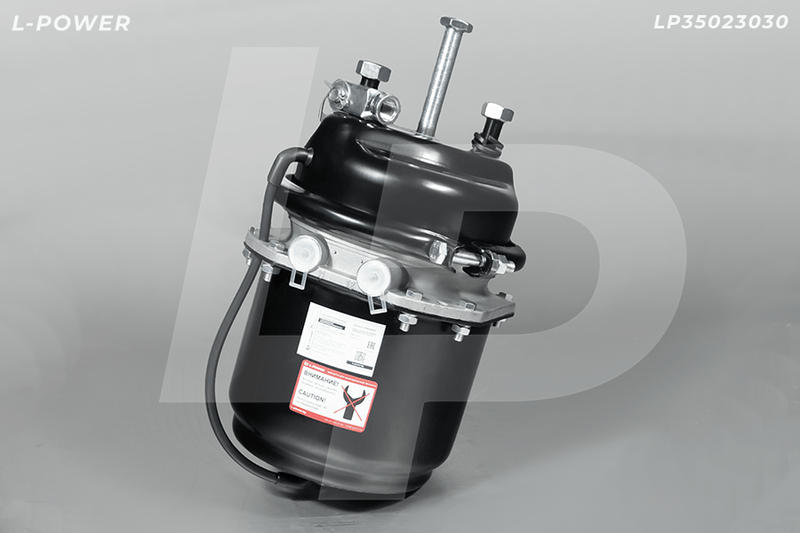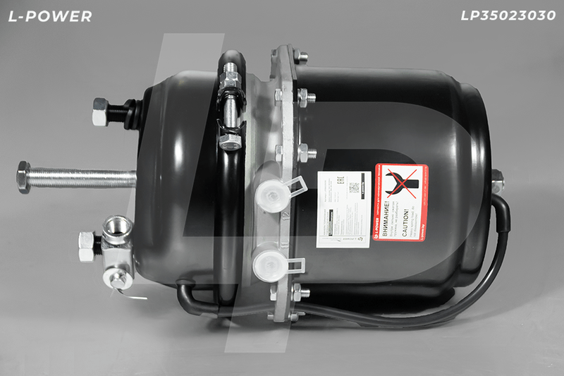 Камера пневматическая с пружинным энергоаккумулятором барабанного тормоза (энергоаккумулятор). Тип 30/30 (30тип — рабочий тормоз, 30тип — стояночный). Поршневой тип («бочка»). Шток М16х1,5, вылет штока (по центру оси пальца) 58мм, ход штока 57/57мм. Шпильки М16х1,5 (между шпильками 120мм). Дренажная трубка. Пыльник, вилка, гайки и шайбы шпилек в комплекте. Хомуты на оцинкованных болтах с шестигранной головкой. Порты подключения М16х1,5