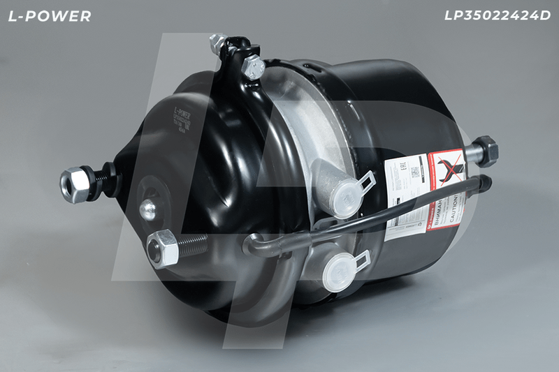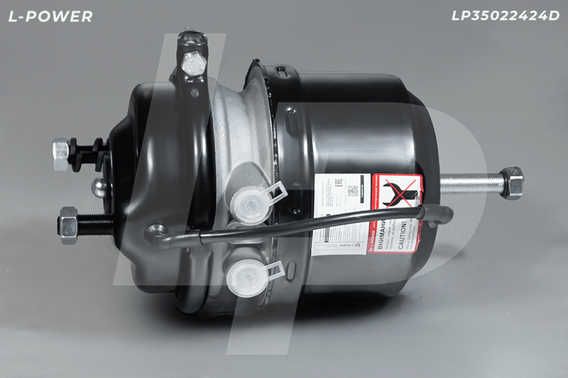 Камера пневматическая с пружинным энергоаккумулятором дискового тормоза (энергоаккумулятор). Тип 24/24 (24тип рабочий тормоз, 24тип стояночный). Поршневой тип («бочка»), байонетная. Ход штока 57/57мм. Шпильки М16х1,5 (между шпильками 120мм). Гайки и шайбы шпилек в комплекте. Хомуты на оцинкованных болтах с шестигранной головкой. Порты подключения М16х1,5