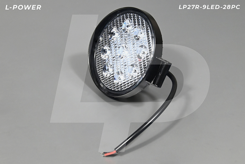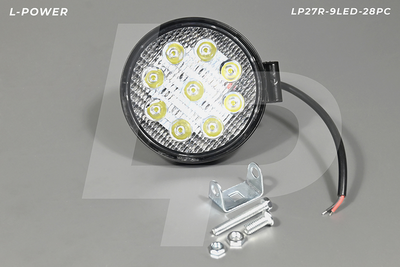 Фара доп. рабочая круглая, рассеиваемый свет, 9 диодов 27W (115х28х142) LED 12/24V L-POWER LP27R-9LED-28PC