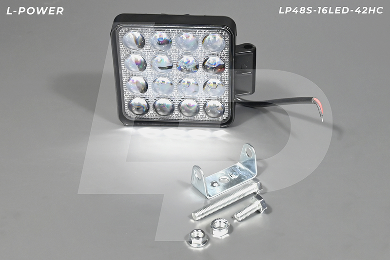 Фара доп. рабочая квадратная, направленный свет, 16 диодов 48W (110х42х140) LED 12/24V L-POWER LP48S-16LED-42HC