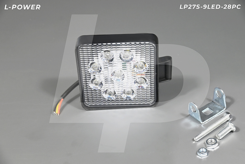 Фара доп. рабочая квадратная, рассеиваемый свет, 9 диодов 27W (110х28х140) LED 12/24V L-POWER LP27S-9LED-28PC