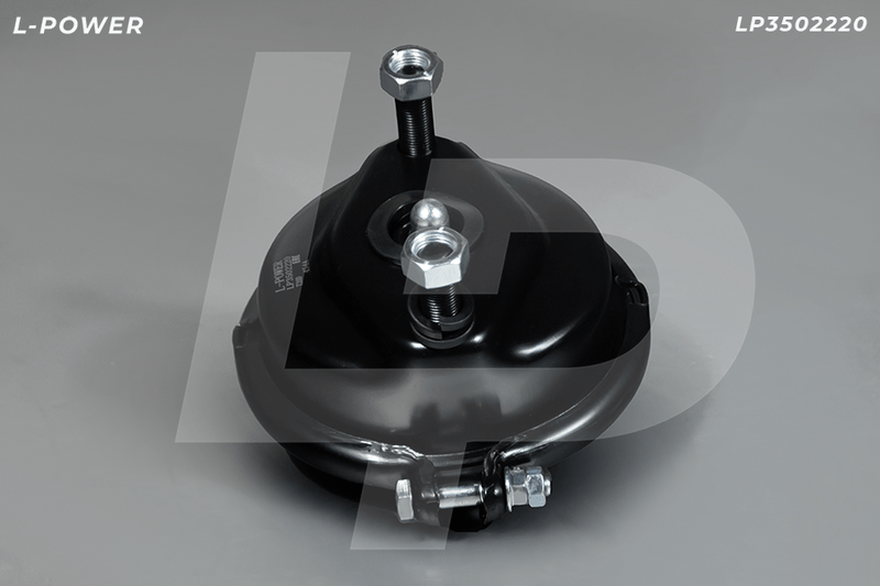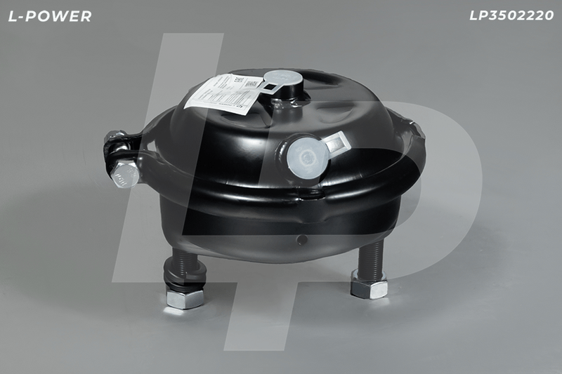 Камера пневматическая дискового тормоза, Тип 20, ход штока 57мм. Шпильки М16х1,5 (между шпильками 120мм). Гайки и шайбы шпилек в комплекте. Хомут на оцинкованных болтах с шестигранной головкой. 2 порта подключения М16х1,5 (торцевой и боковой).