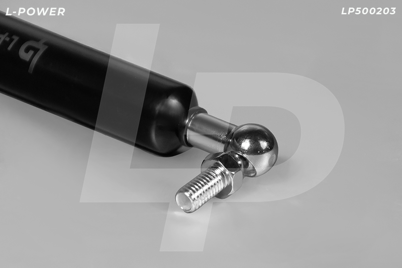 Lмакс= 355мм, Lмин=240 мм, F1=150 Н, Dцил=22 мм, dшт=10мм. Тип крепления — мет. шарниры
