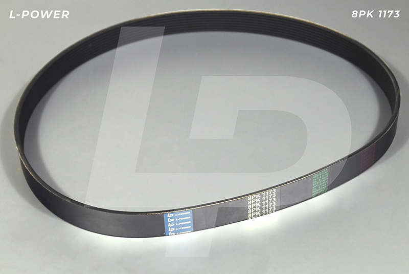 Профиль: PK (поликлиновой). Шаг между ребрами 3,56мм, количество ребер 8. Эффективная длина 1173 мм. Материал: каучук (резина) с армирующим кордом из полиэфирных нитей