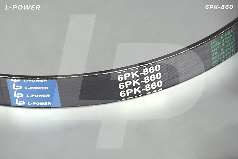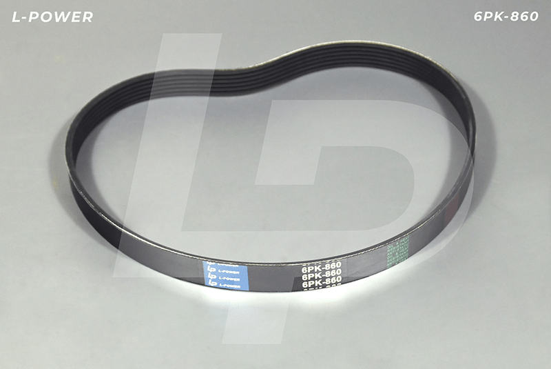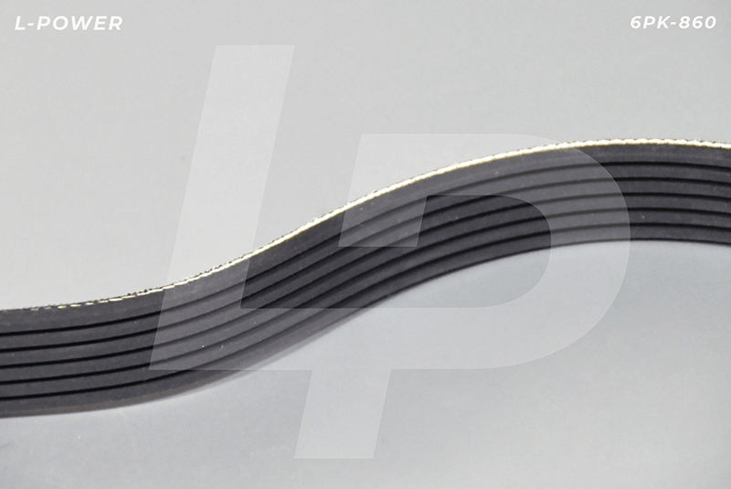 Профиль: PK (поликлиновой). Шаг между ребрами 3,56мм, количество ребер 6. Эффективная длина 860 мм. Материал: каучук (резина) с армирующим кордом из полиэфирных нитей