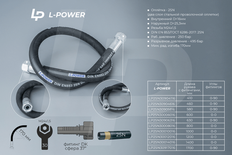 Рукав высокого давления L-POWER. Оплётка — 2SN (два слоя стальной проволочной оплетки).