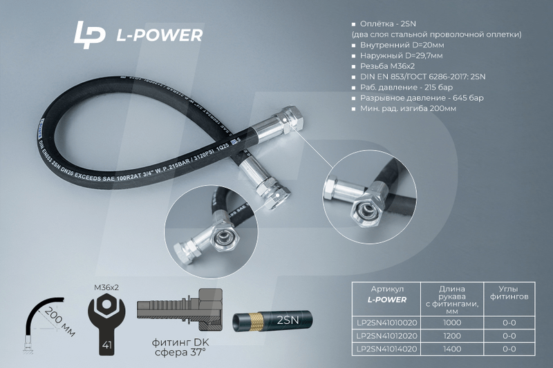 Рукав высокого давления L-POWER. Оплётка — 2SN (два слоя стальной проволочной оплетки).