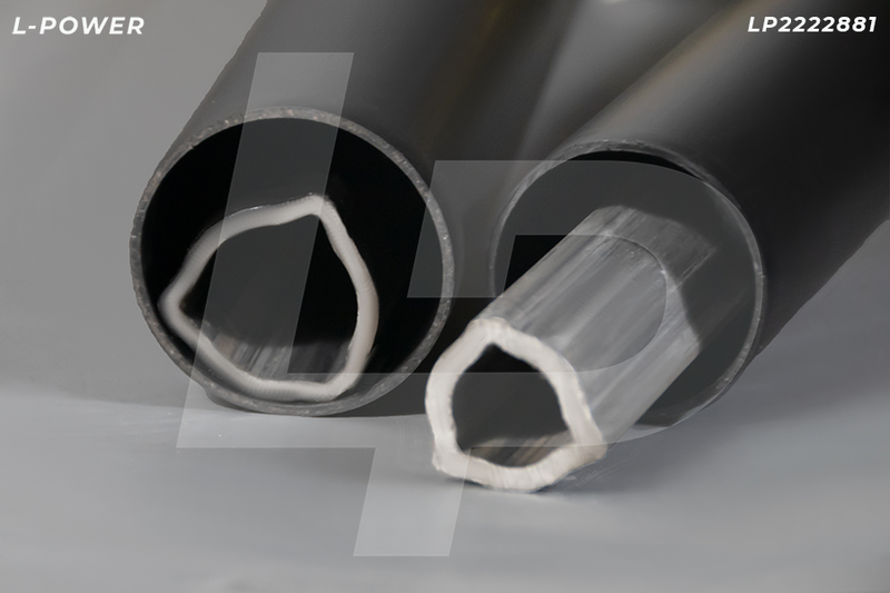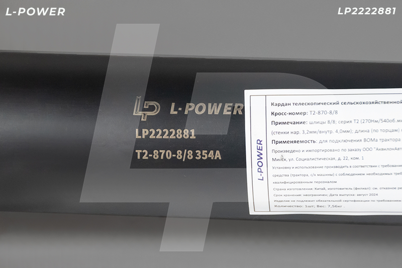 Вал телескопический карданный L-POWER для навесного оборудования МТЗ 80, 82, 1221. 2-ая серия (крут. момент 270Нм), треугольный профиль силовых труб (36,3/29,0), толщина внутренней трубы 4,0мм, наружной 3,1мм.