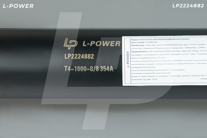 Вал телескопический карданный L-POWER для навесного оборудования МТЗ 80, 82, 1221. 4-ая серия (крут. момент 380Нм), треугольный профиль силовых труб (43,6/36,1), толщина внутренней трубы 4,0мм, наружной 3,4 мм.